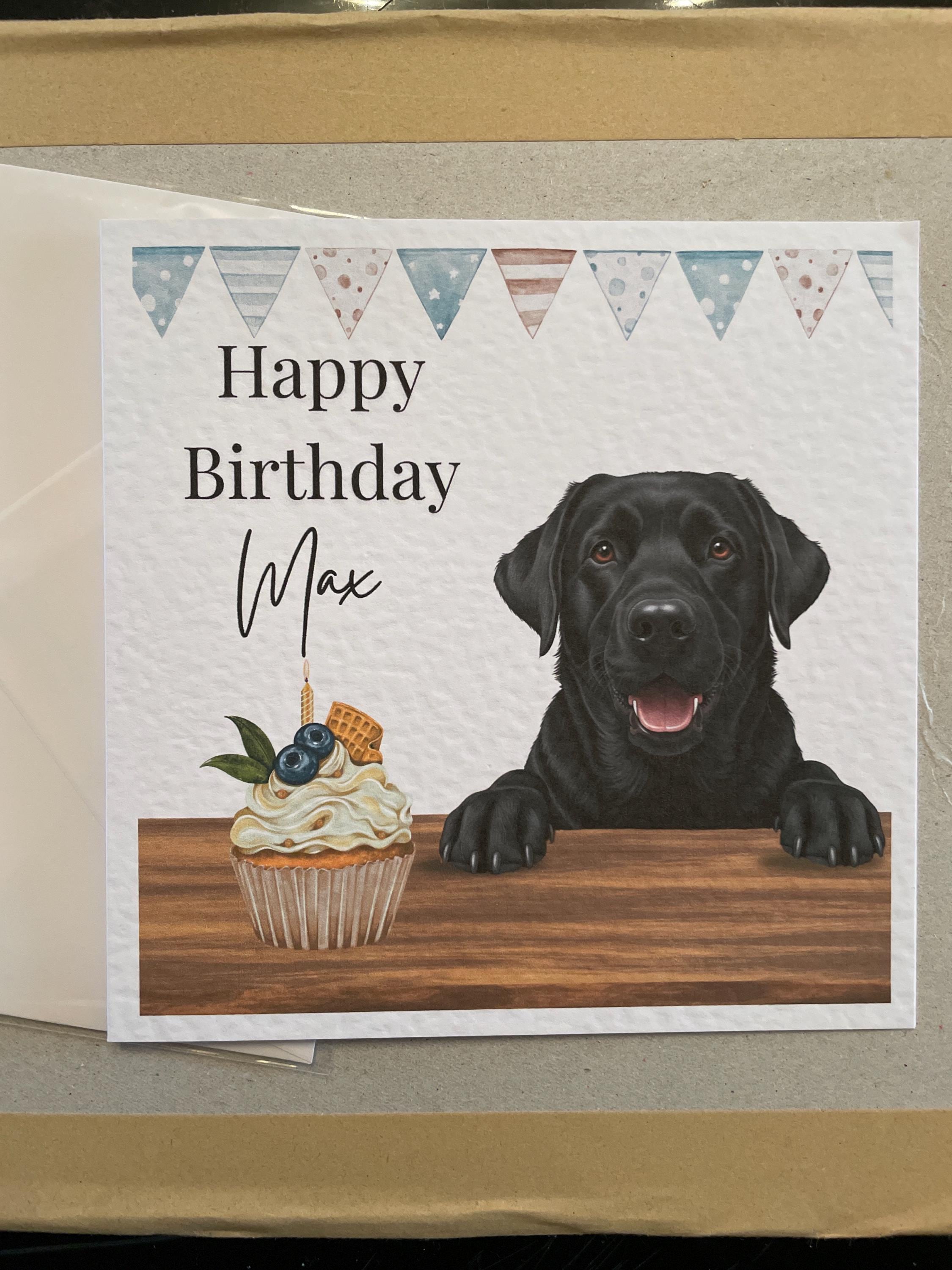 Looking for the perfect birthday card for a dog or labrador lover? This charming 6x6 inch card features a beautiful Chocolate labrador dog eagerly waiting for some birthday cake!