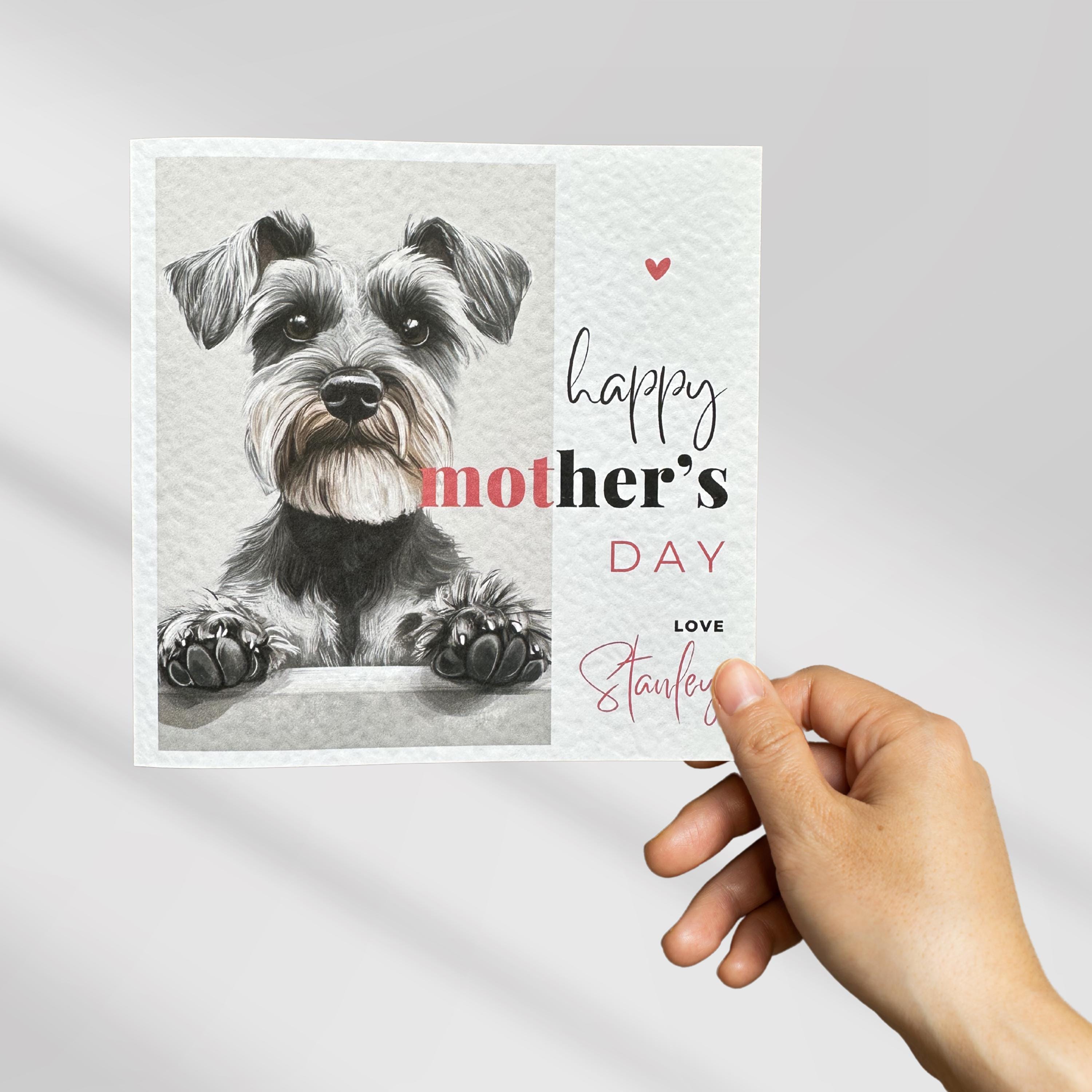 Looking for the perfect mothers day card for a dog or Schnauzer lover? This charming 6x6 inch card features a beautiful Schnauzer dog.