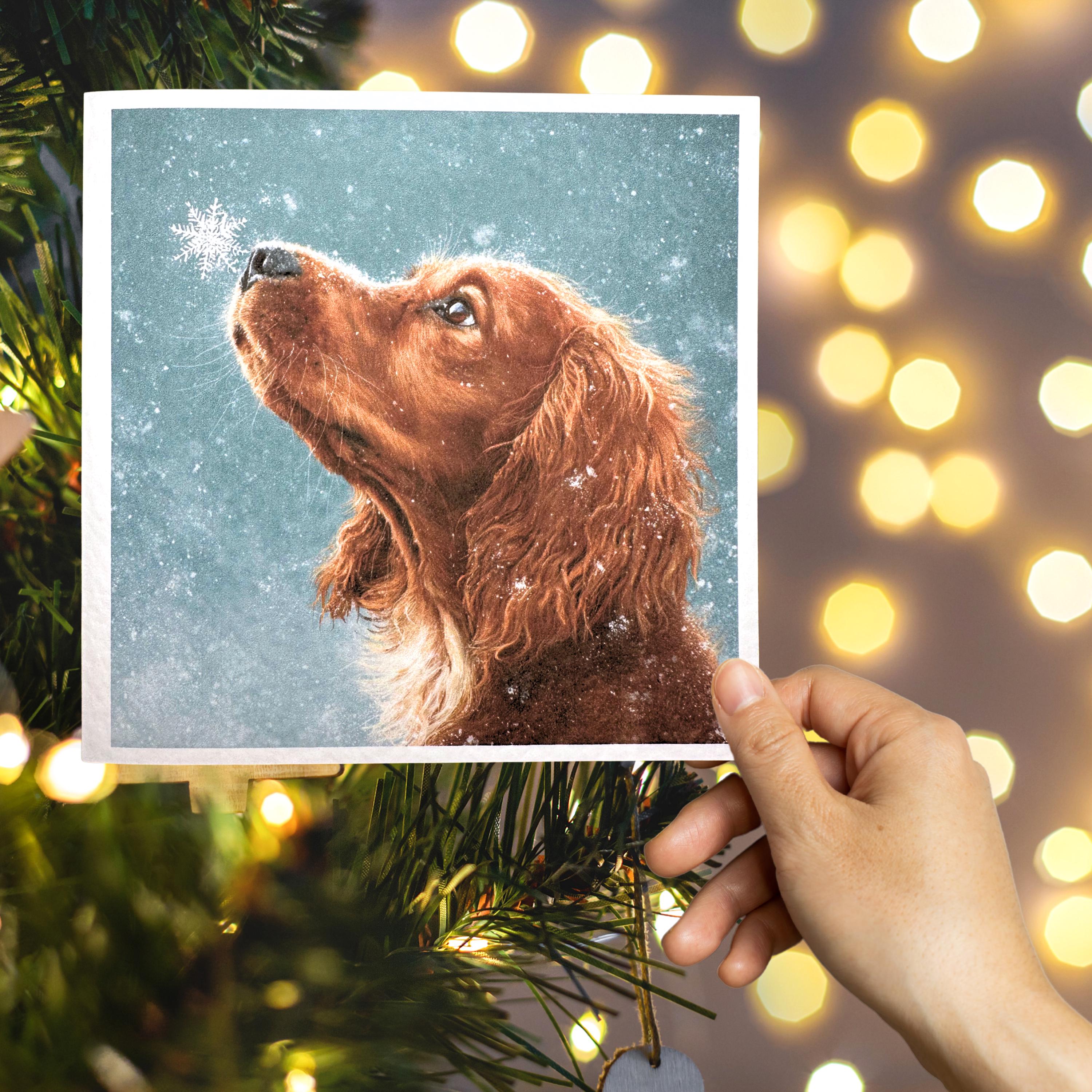 Add a personal touch to your christmas cards with our beautifully customised red cocker spaniel Christmas card! Perfect for spaniel owners and lovers!