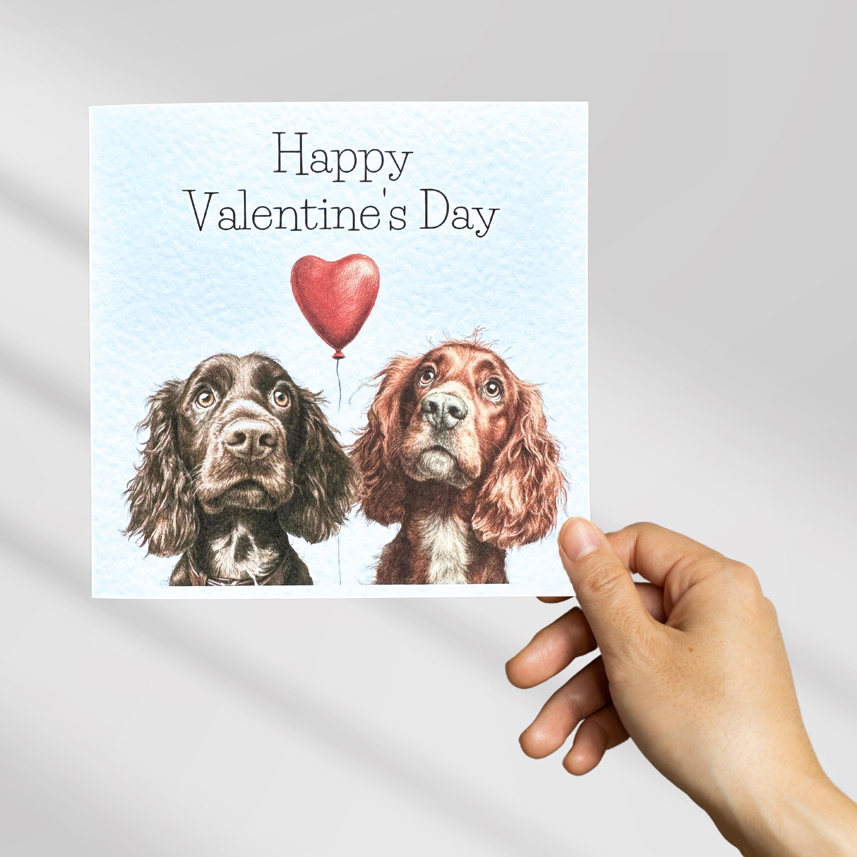 Looking for the perfect valentines card for a dog or cocker spaniel lover? This charming 6x6 inch card features beautiful red and brown working cocker spaniel dogs.