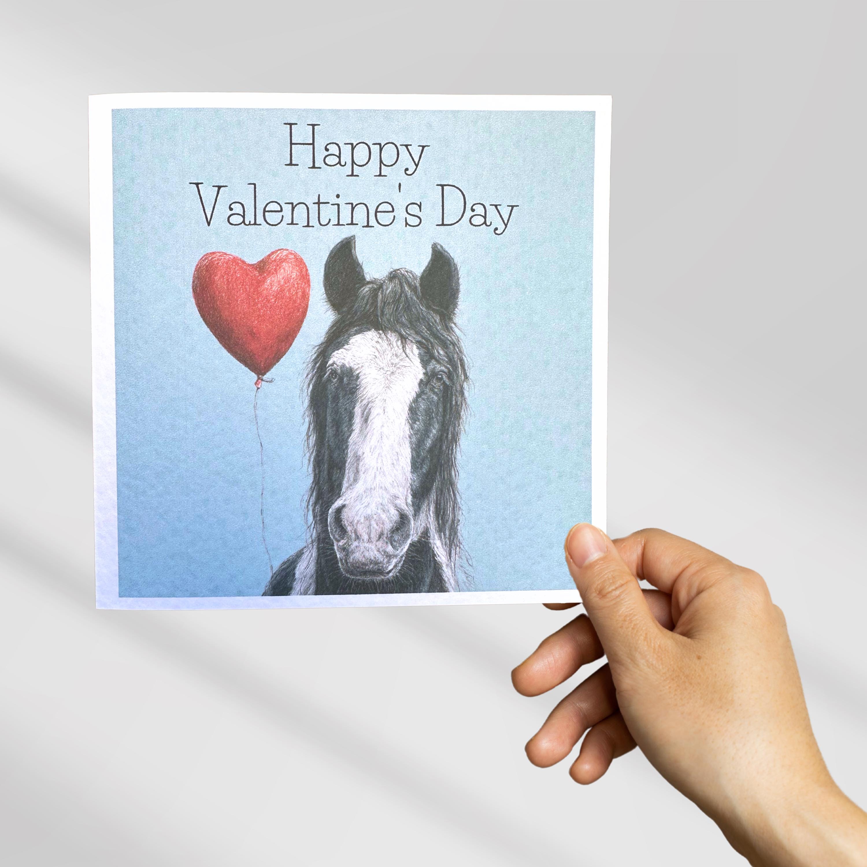 Looking for the perfect valentines card for a horse lover? This charming 6x6 inch card features a beautiful Black and white cob horse.