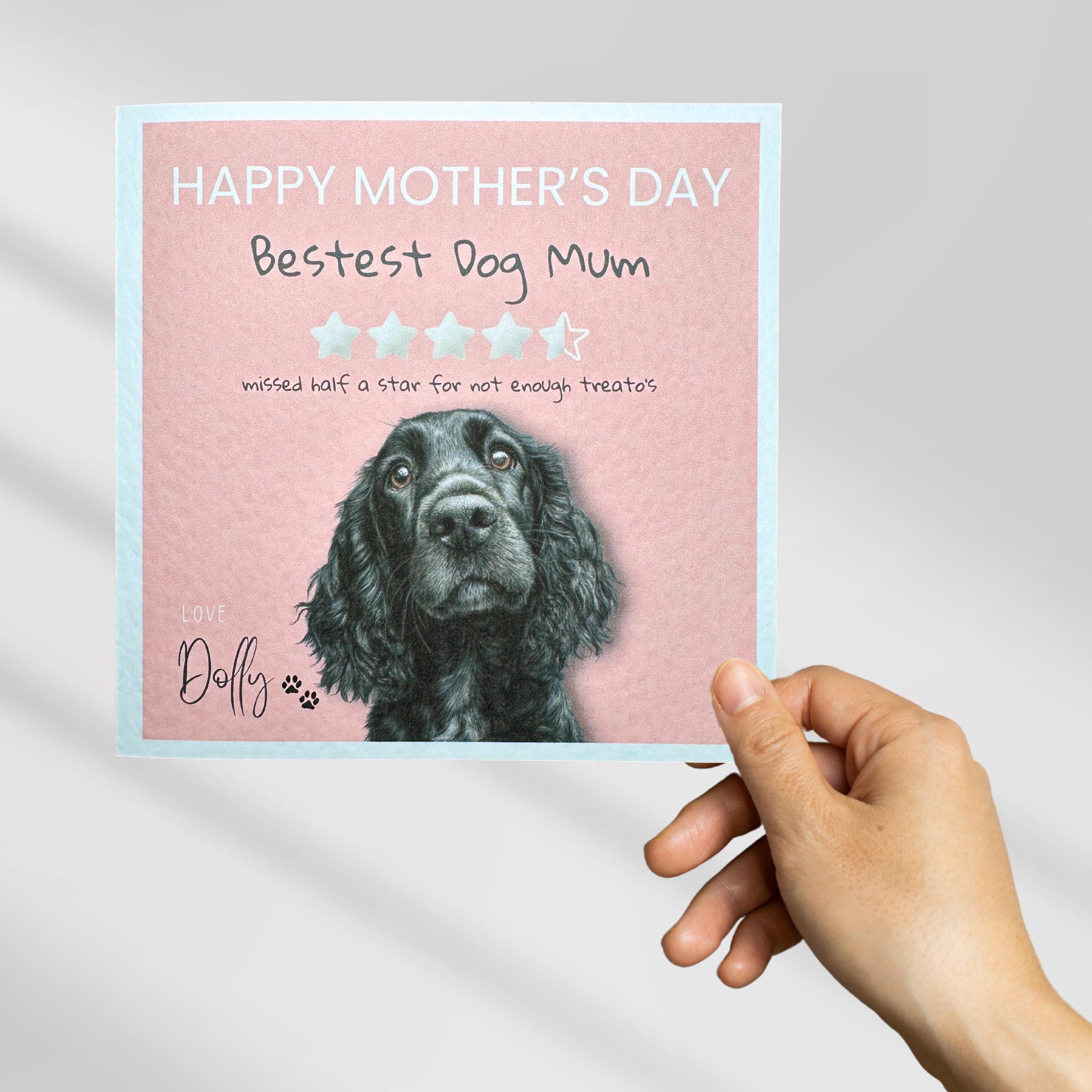 Looking for the perfect mothers day card for a dog or cocker spaniel lover? This charming 6x6 inch card features a beautiful black working cocker spaniel dog.
