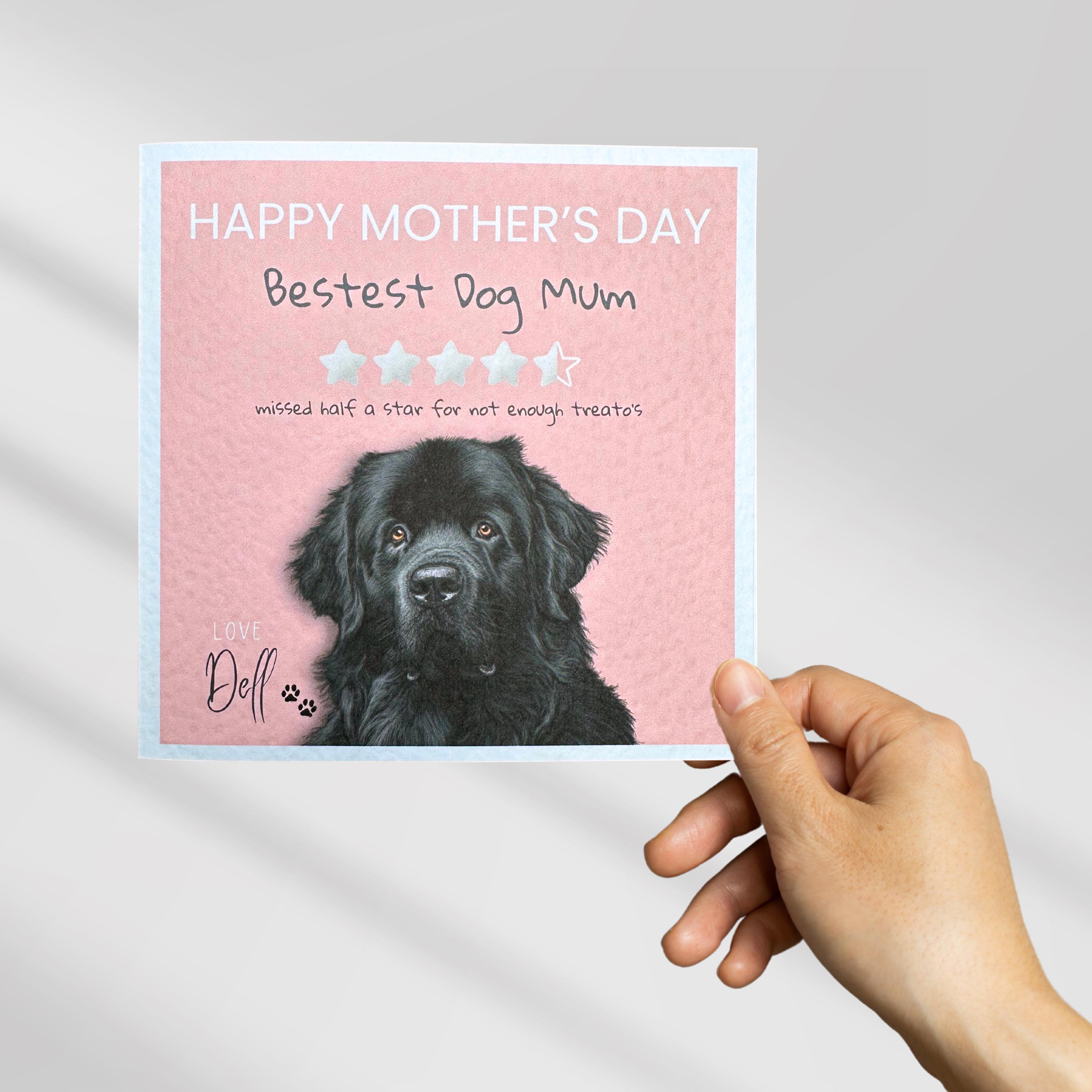 Looking for the perfect mothers day card for a dog or Newfoundland lover? This charming 6x6 inch card features a beautiful black Newfoundland dog with pink heart balloons.