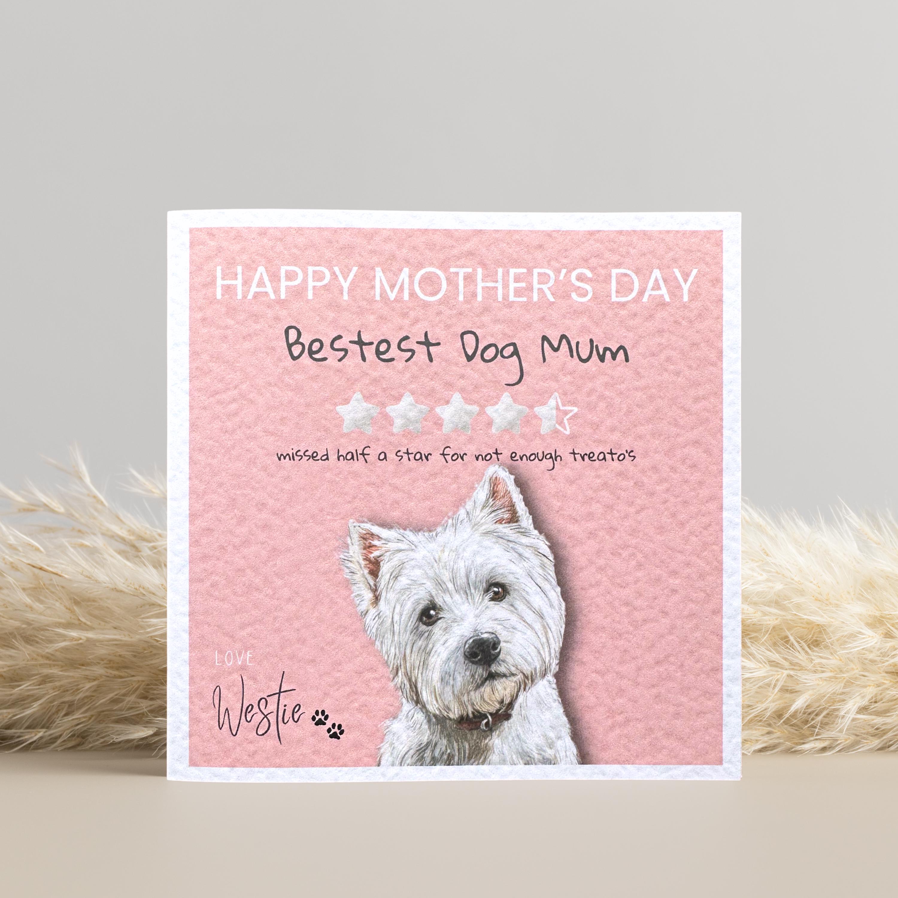 Looking for the perfect mothers day card for a dog or westie lover? This charming 6x6 inch card features a beautiful West Highland Terrier dog.