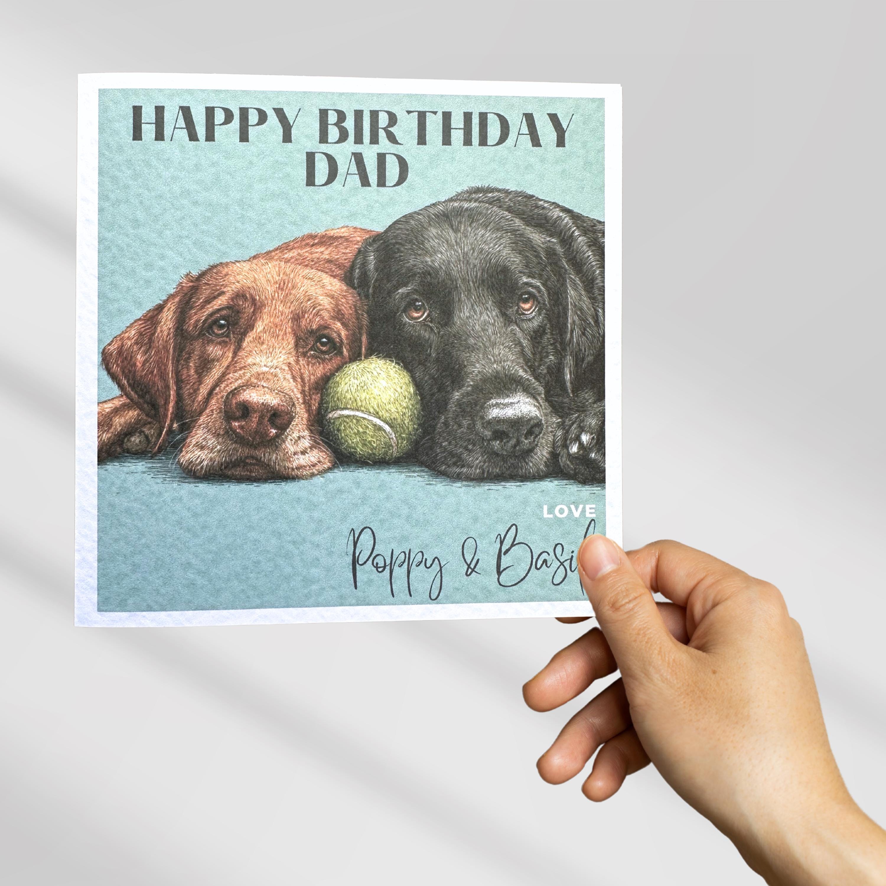 Looking for the perfect birthday card for a dog or labrador lover? This charming 6x6 inch card features a beautiful black and fox red labrador with a tennis ball.